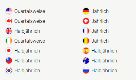 Das Bild zeigt wie oft Dividende gezahlt wird. Wichtig: Man muss nicht in dem Land wohnen. Sondern der Haupt-Standort des Unternehmens ist entscheident.